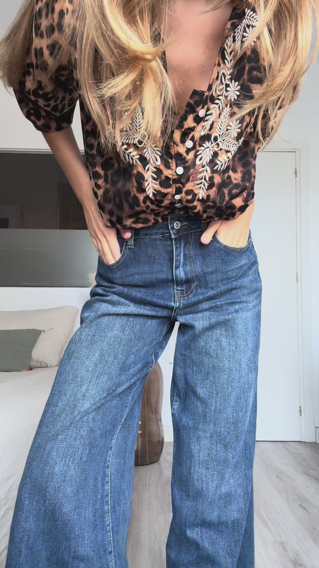 Camisa print con bordado 80% viscosa 20% poliester.