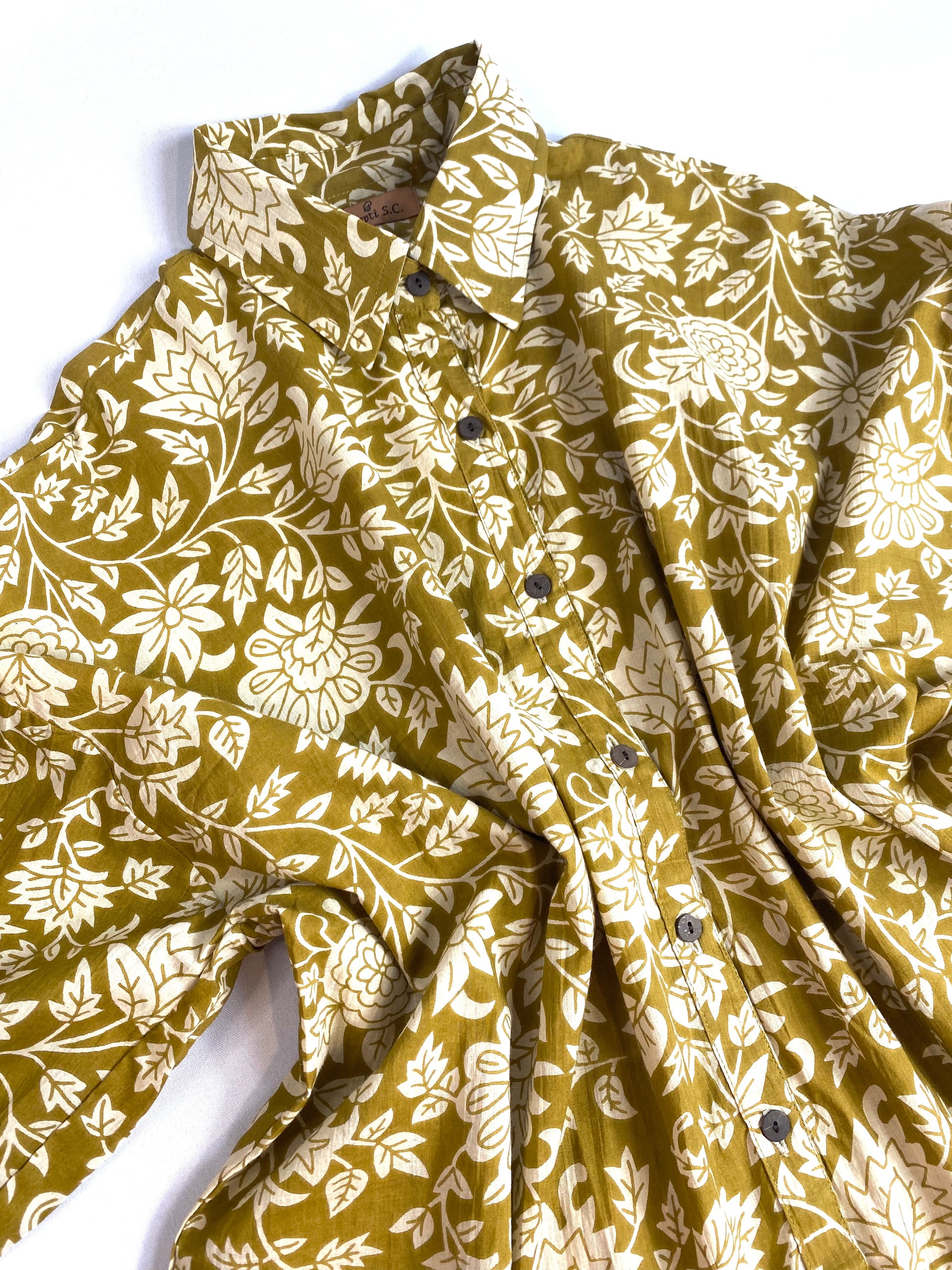 Esta camisa oversize 100% algodón estilo blockprint destaca por su técnica tradicional de estampado manual, que aporta un diseño único y auténtico. Fabricada con algodón de alta calidad, ofrece comodidad y transpirabilidad, ideal para quienes valoran prendas artesanales con un toque distintivo. Su estilo versátil permite combinarla fácilmente en looks casuales o sofisticados, garantizando durabilidad y frescura.
