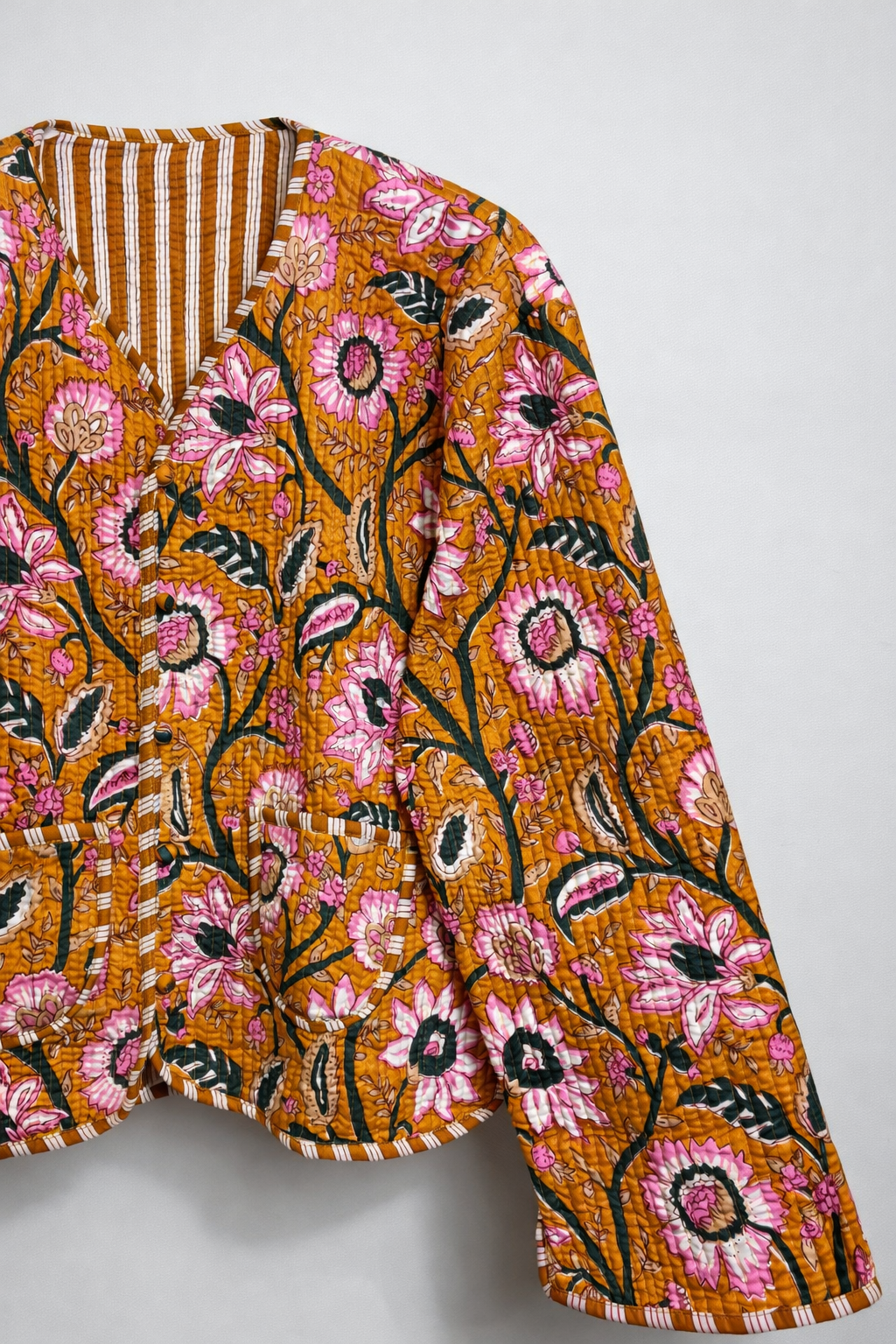 Chaqueta reversible con bolsillos externos. Confeccionada en India 100% algodón blockprint.