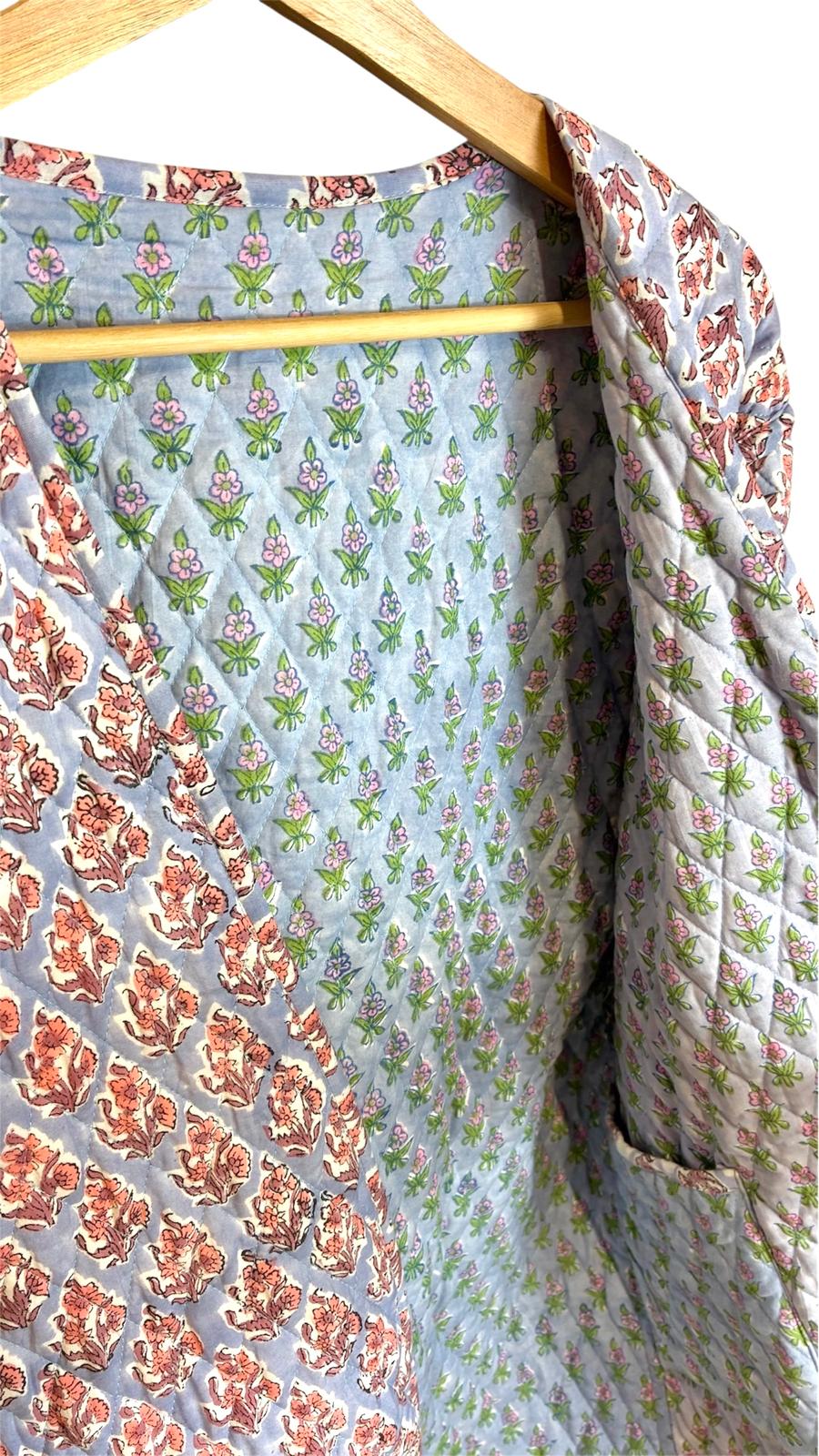 Chaqueta blockprint oversize acolchada 100% algodón fabricada en India.
