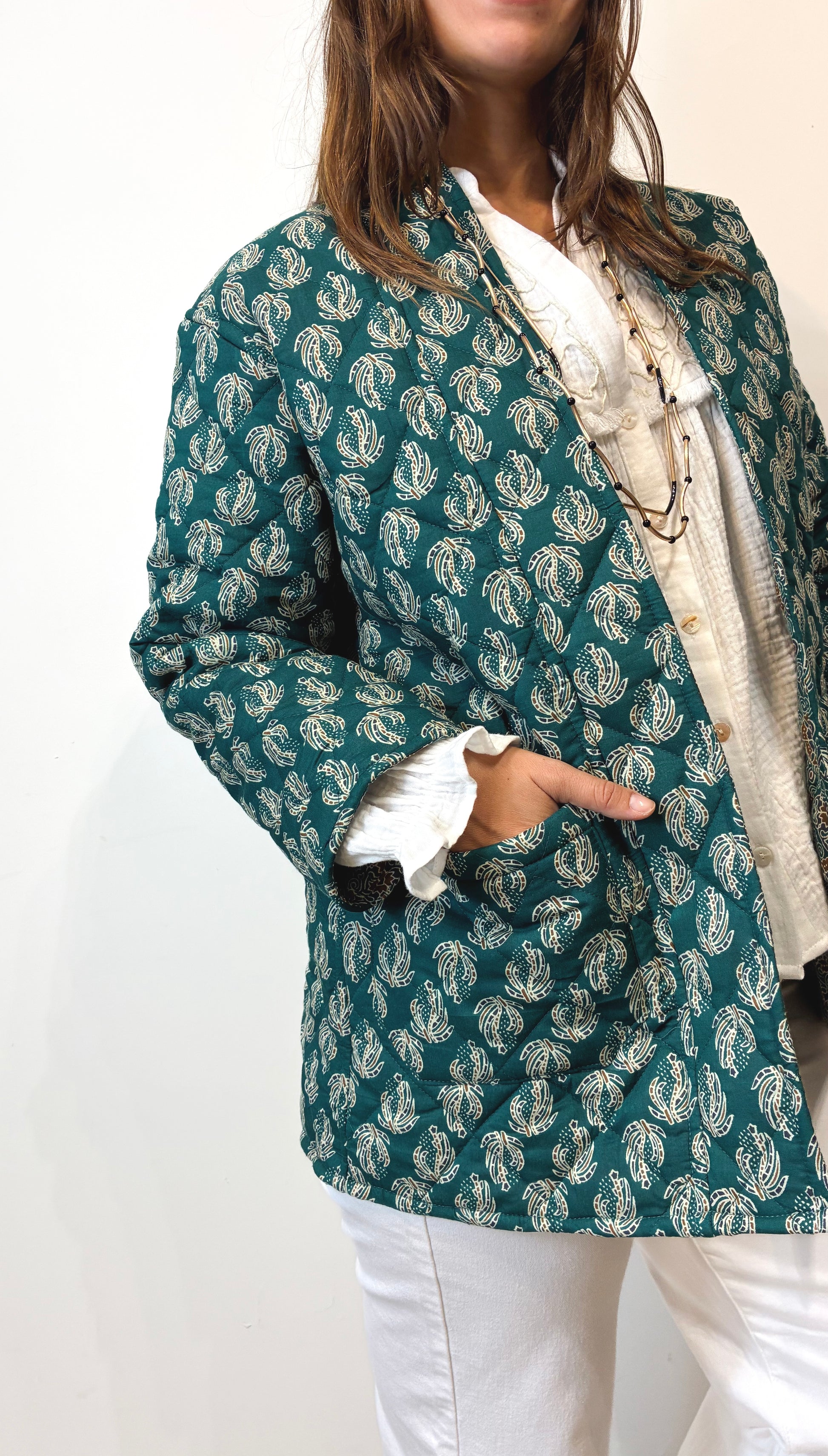 Chaqueta reversible acolchada 100% algodón fabricada en India.