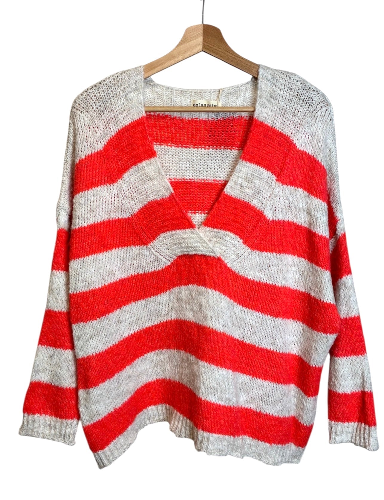 Jersey cuello V 18% lana 52% acrílico, 30% poliester.