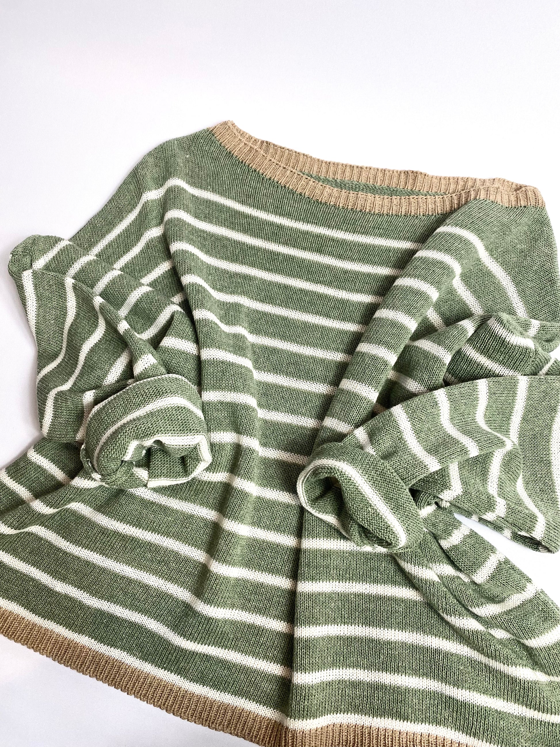 Este jersey de hilo 100% algodón ofrece una textura suave y transpirable, ideal para mantener la comodidad durante todo el día. Su diseño amplio y cuello redondo con rayas aporta un estilo clásico y versátil, perfecto para combinar en cualquier ocasión. La calidad del algodón garantiza durabilidad y un tacto agradable sobre la piel.