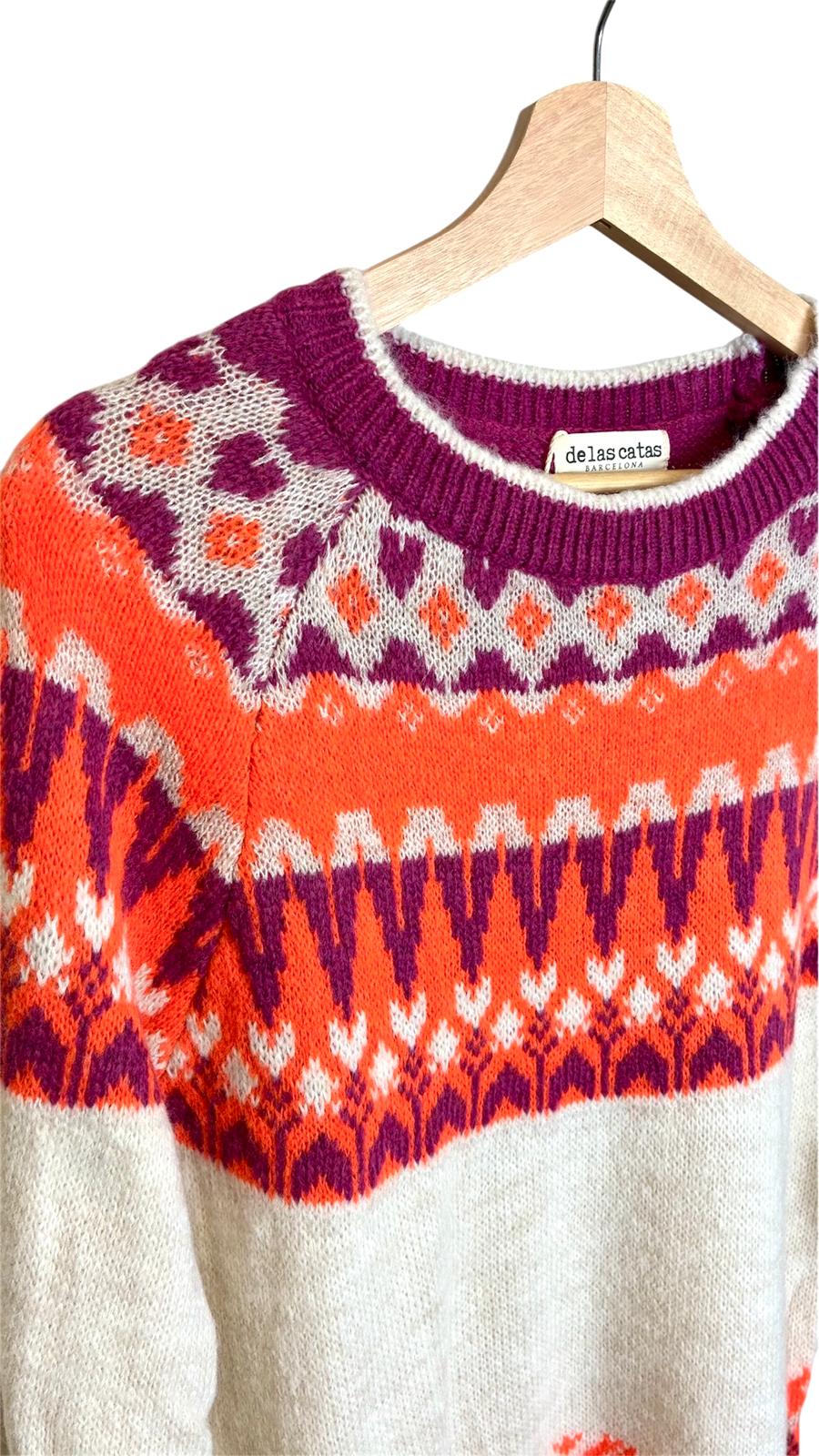Jersey cuello V 18% lana 52% acrílico, 30% poliester.