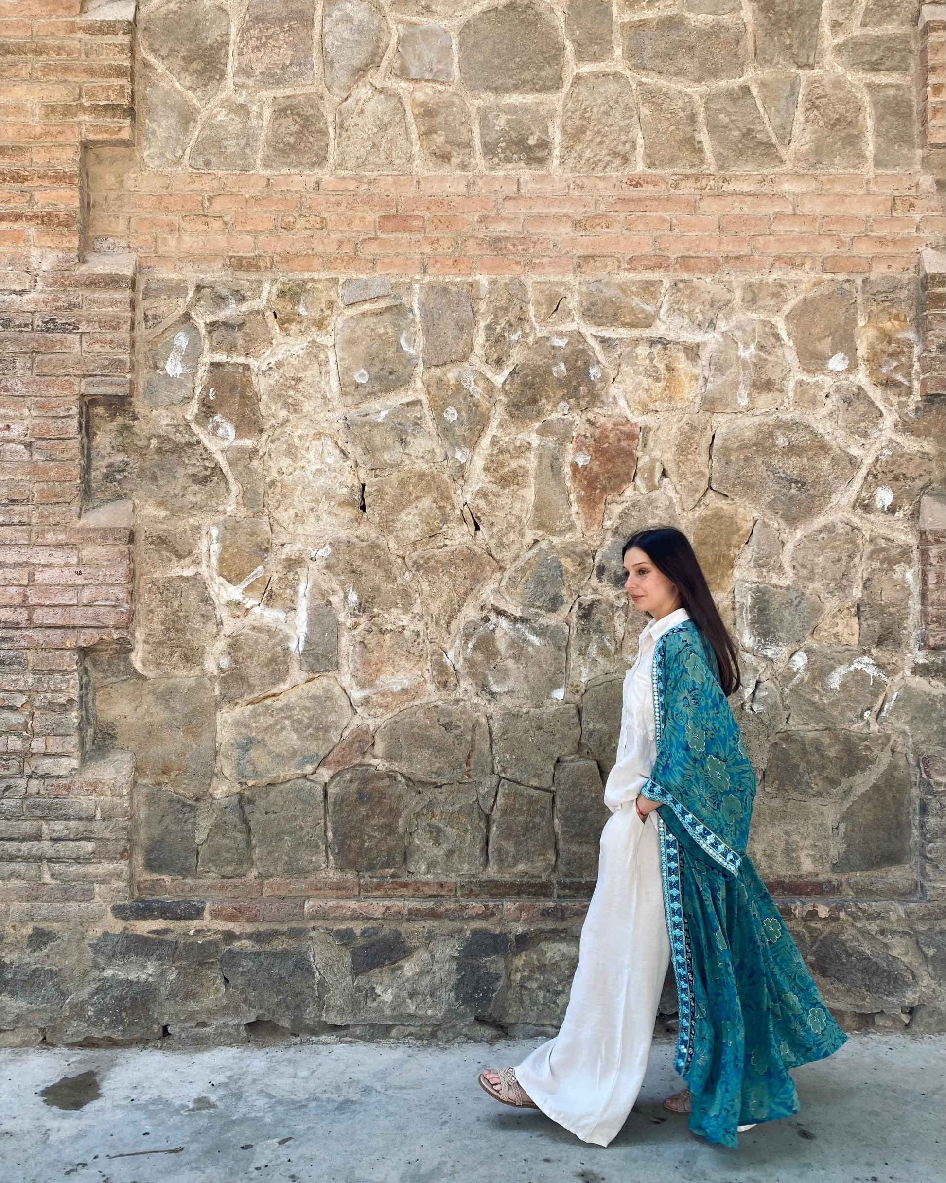 Este kimono largo de seda destaca por su delicada textura y elegancia natural. Los detalles bordados aportan un toque artesanal y sofisticado, mientras que el lazo permite ajustar la prenda para un ajuste personalizado y cómodo. Ideal para quienes buscan una pieza versátil que combine estilo y confort en cualquier ocasión.