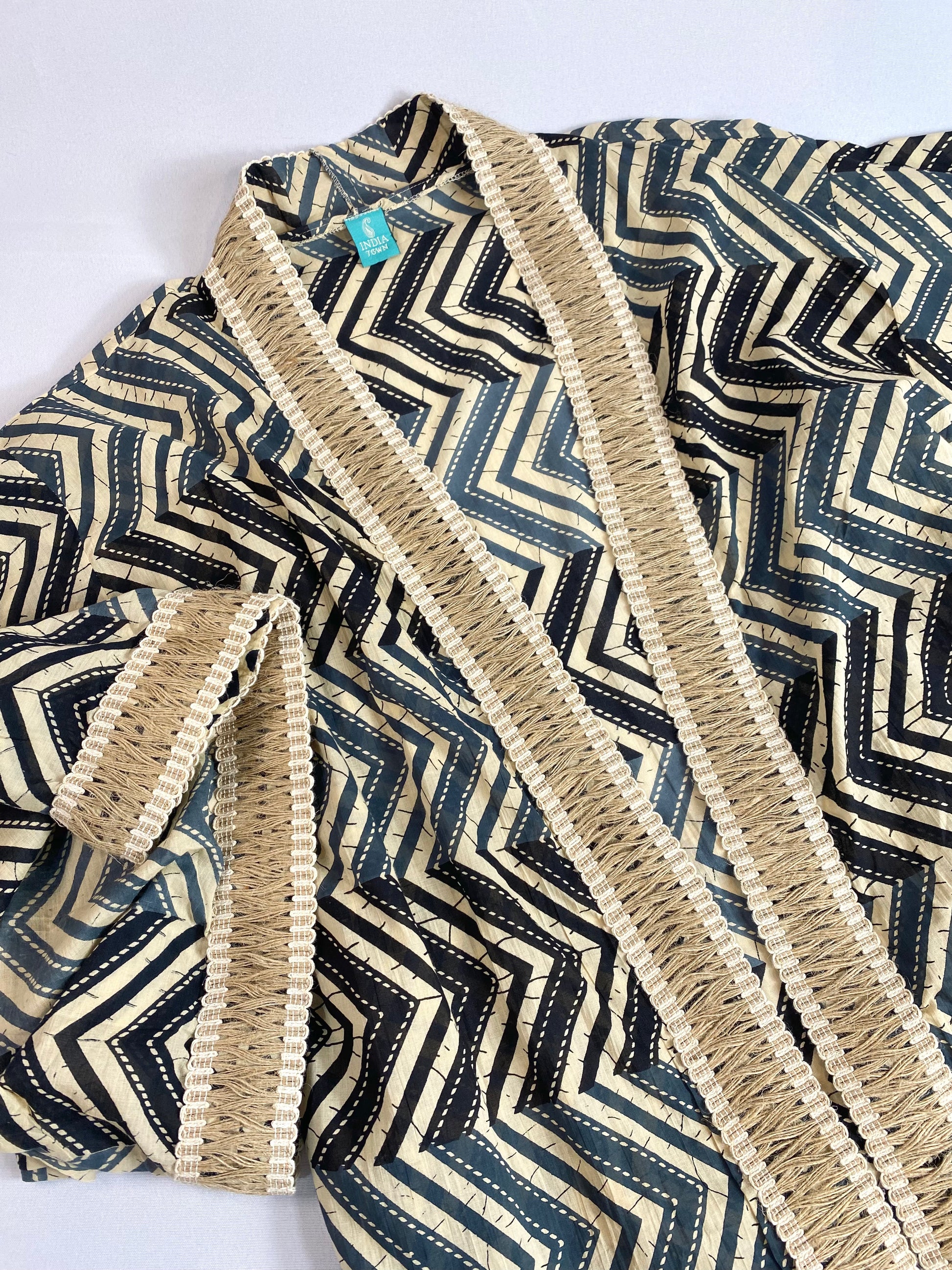 Este kimono de seda con detalle en yute combina elegancia y formalidad, ideal para ocasiones especiales. Su diseño ligero ofrece comodidad sin sacrificar estilo, mientras que la variedad de colores disponibles permite adaptarlo a diferentes gustos y looks. Perfecto para quienes buscan una prenda sofisticada y versátil.
