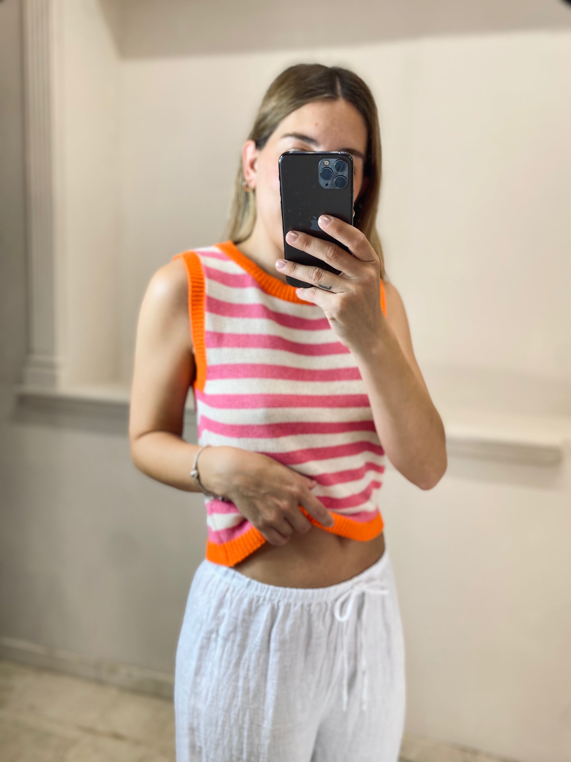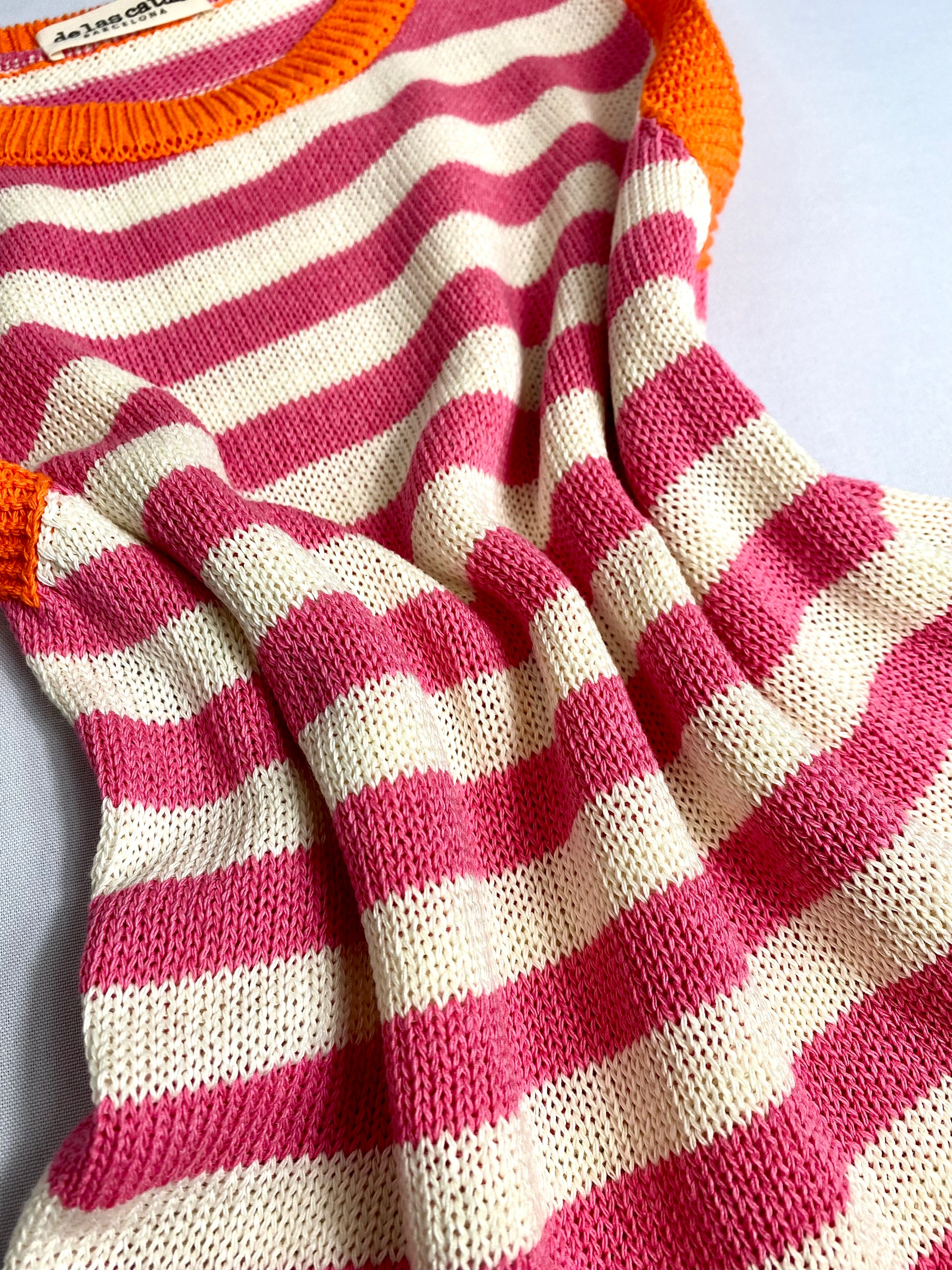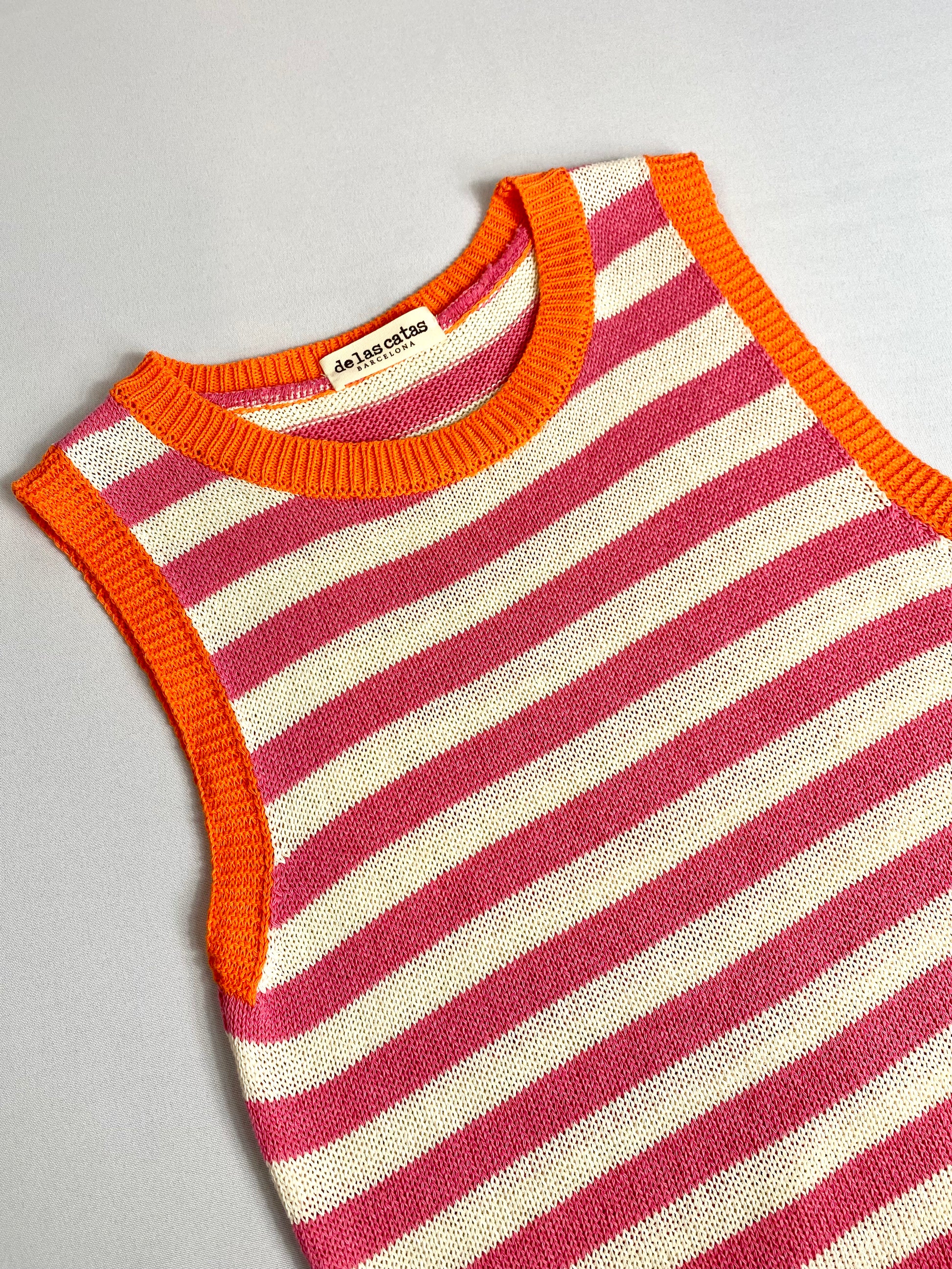Este top de hilo 100% algodón ofrece una textura suave y transpirable, ideal para el confort diario. Su diseño a rayas con colores vivos aporta un toque vibrante y moderno, perfecto para combinar con diferentes estilos. La calidad del algodón garantiza durabilidad y frescura, haciendo de esta prenda una opción versátil y elegante para cualquier ocasión.