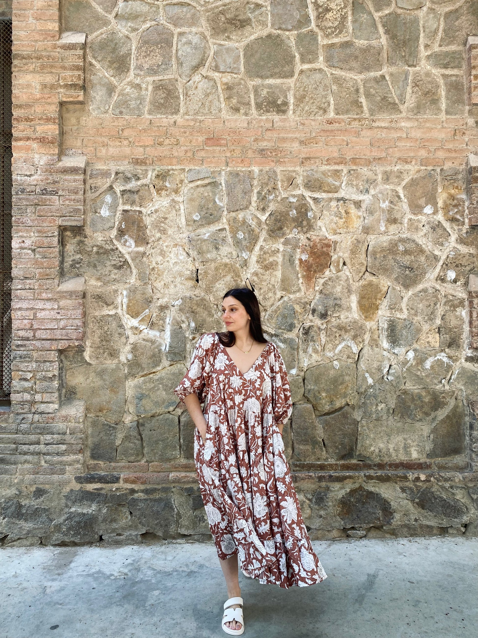 Este vestido está confeccionado en algodón 100%, garantizando suavidad y transpirabilidad. Su diseño incluye prácticos bolsillos, que aportan funcionalidad sin sacrificar estilo. Perfecto para quienes buscan una prenda cómoda y versátil para el día a día.